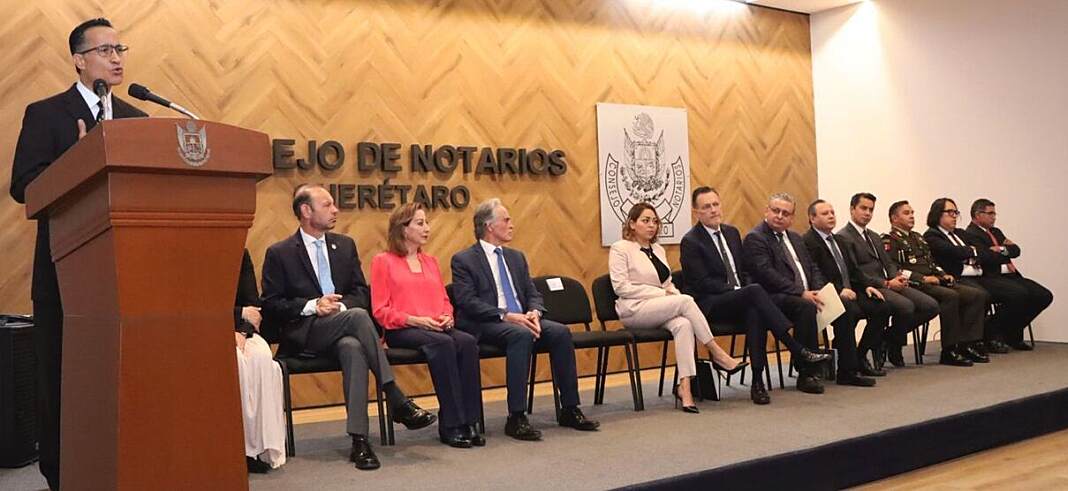 El Presidente de los Notarios Queretanos, durante su mensaje, estableció que desde el Consejo se impulsará construir un futuro institucional, estrechando el vínculo directo con la ciudadanía, “porque la fe pública también es un acto de responsabilidad social”, al tiempo de mencionar que se enfocarán en resolver lo urgente, sin perder de vista lo importante, en ese sentido dijo, “por ello vamos a impulsar la digitalización de los procesos notariales, y las jornadas notariales en los municipios queretanos con el único interés de acercarnos a la población que requiera el servicio notarial”.