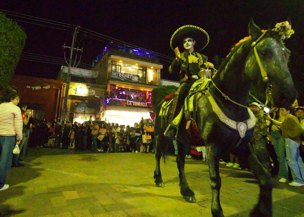 San Juandel Río, Qro., Octubre 31 del 2025.- Como parte de las actividades del 19º Festival de Día de Muertos San Juan del Río 2025, se llevó a cabo el primer “Desfile y Concurso Ecuestre de los Muertos”, el cual registró una participación de 19 caballos y jinetes que avanzaron desde el Puente de la Historia, recorrieron avenida Juárez, calle Hidalgo, hasta llegar a la Plaza Independencia.