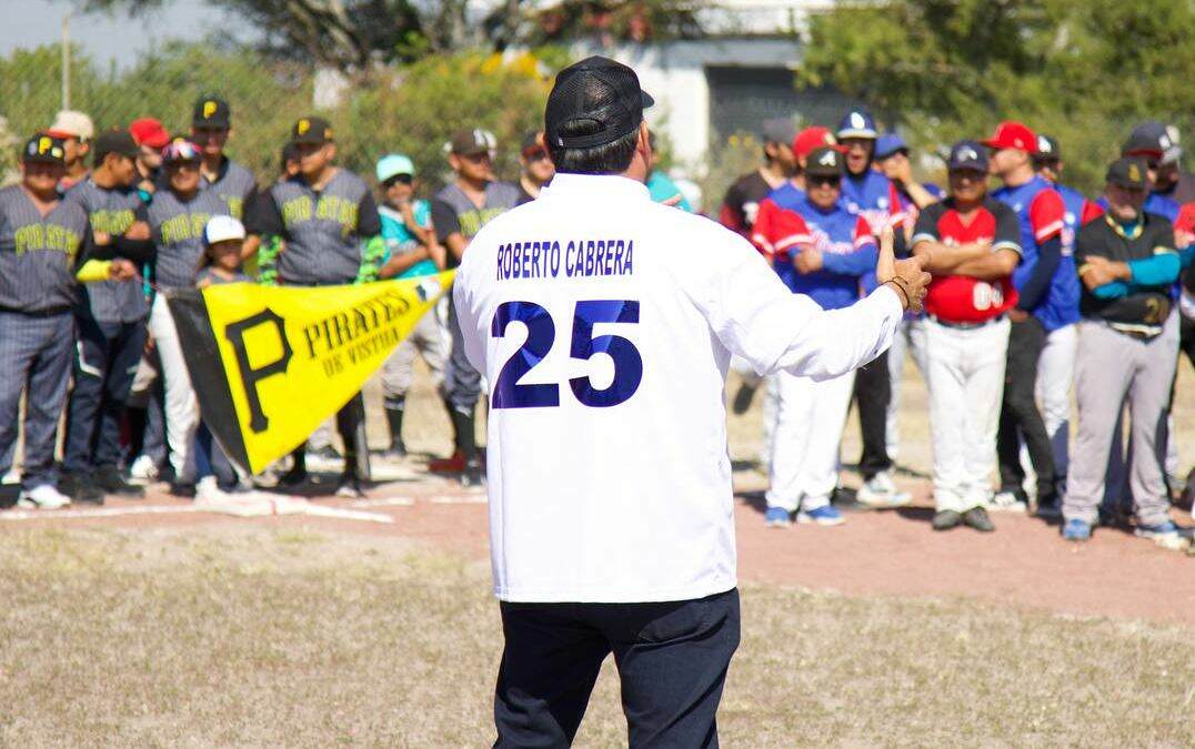 San Juan del Río, Qro., Octubre 27 del 2025.- El presidente municipal de San Juan del Río, Roberto Cabrera Valencia, encabezó la ceremonia de inauguración de las gradas en el campo de beisbol de la comunidad Ojo de Agua, donde también quedó formalmente iniciada la Liga de Beisbol 2025-2026, a quienes convocó a consolidarse como un ejemplo en la región.