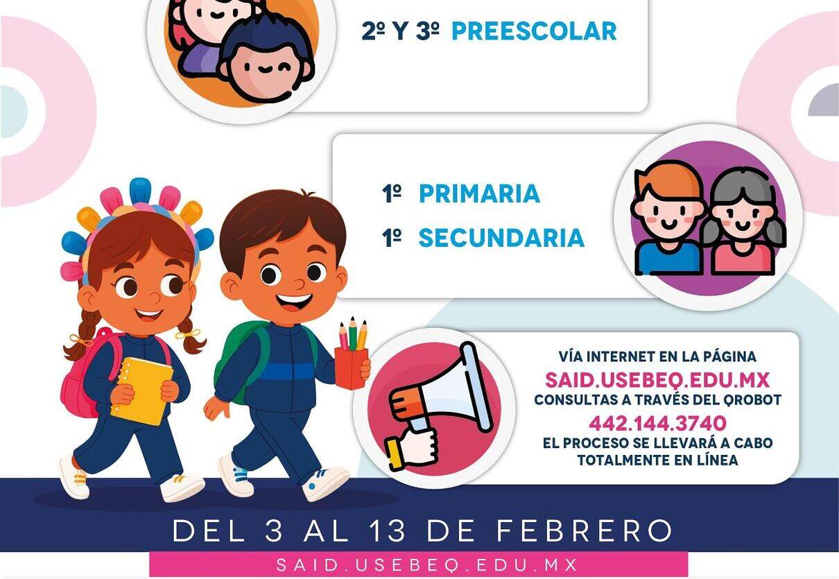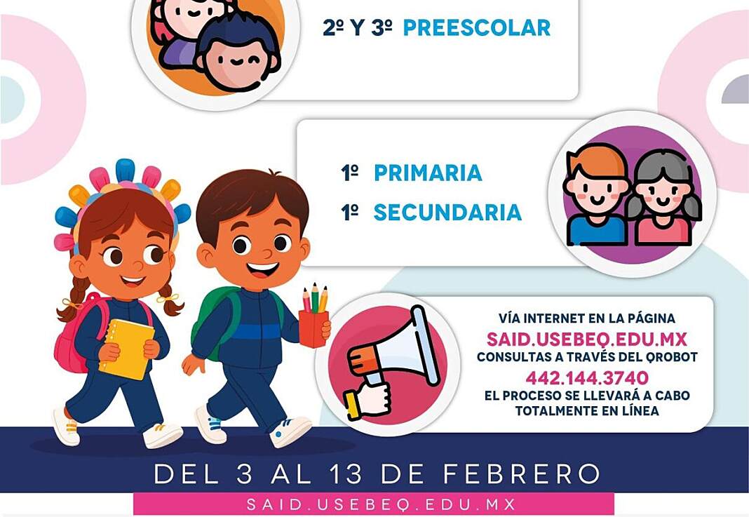 Los resultados de distribución de los espacios para alumnas y alumnos de nuevo ingreso a preescolar y los que hayan rechazado la preasignación, se publicarán en la página oficial de la USEBEQ del 15 al 17 de abril.