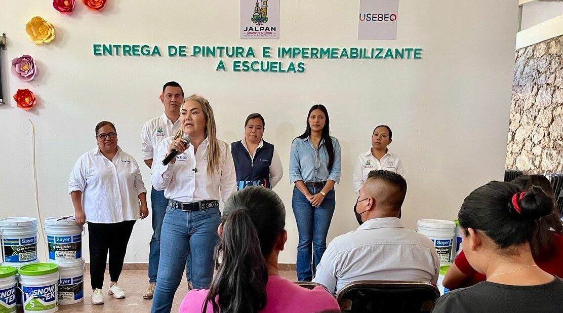 Se entregaron 509 cubetas de pintura, 139 cubetas de impermeabilizante y 60 luminarias a 83 planteles de los cuatro municipios serranos, materiales que serán utilizados para la recuperación, mantenimiento y mejoramiento de los planteles escolares, con el fin de elevar la calidad de los espacios educativos y fortalecer el sentido de pertenencia en las comunidades.