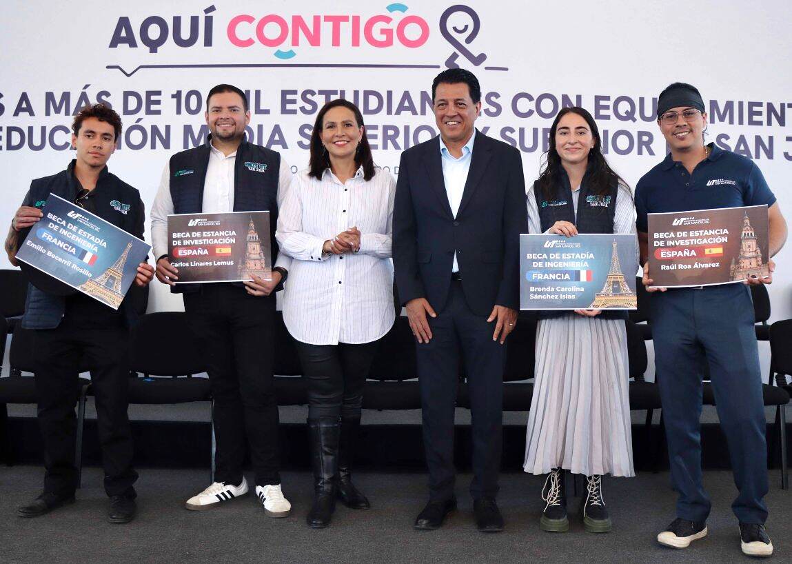 San Juan del Río, Qro., Febrero 18 del 2026.- Cuatro estudiantes de la Universidad Tecnológica de San Juan del Río, (UT San Juan), realizarán movilidades académicas internacionales para potenciar conocimientos y realizar proyectos vinculados a su formación profesional; por lo que el rector de la UT San Juan, Fernando Ferrusca Ortíz, realizó la entrega de apoyos económicos a dichos alumnos.