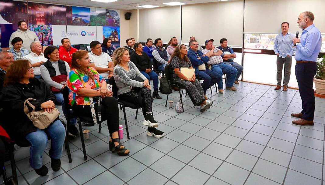 Santiago de Querétaro, Qro., Marzo 12 del 2026.- El titular de la Secretaría de Desarrollo Sustentable (SEDESU), Marco Antonio Del Prete Tercero, se reunió con comerciantes de los municipios de Tequisquiapan, San Juan del Río, Pedro Escobedo y Cadereyta, a fin de presentarles los programas que ofrece la dependencia para impulsar sus negocios con equipamiento y capacitación.