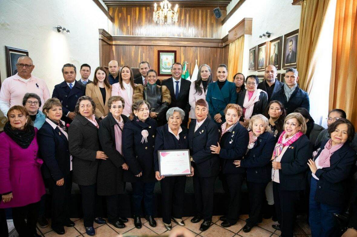 San Juan del Río, Qro., Noviembre 12 del 2025.- Por su lucha incansable contra el cáncer de mama, así como por el acompañamiento, empatía y esperanza que tienen con las mujeres del municipio de San Juan del Río, el alcalde sanjuanense, Roberto Cabrera Valencia, entregó un reconocimiento público a la Asociación Civil Grupo Reto de este municipio, ya que su trayectoria, compromiso y esfuerzo a favor de la salud de las mujeres hacen de esta un gran ejemplo para la sociedad.