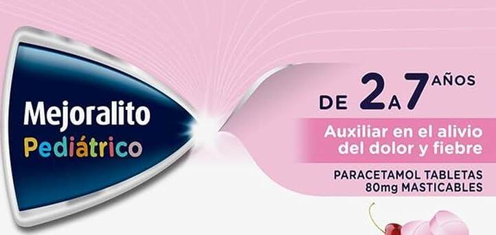 · Mejoralito Pediátrico (Paracetamol) 80 mg, lote 1912000002, con fecha de caducidad DIC 2026, en presentación de caja con 30 tabletas masticables: El número de lote no es reconocido.