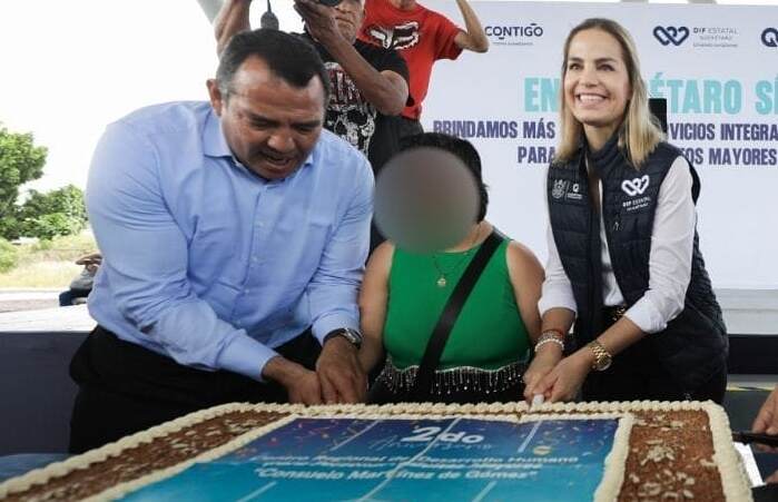 San Juan del Río, Qro., Octubre 07 del 2025.- En el segundo aniversario del Centro Regional de Desarrollo Humano para Personas Adultas Mayores “Consuelo Martínez de Gómez”, la presidenta del Patronato del Sistema Estatal para el Desarrollo Integral de la Familia (DIF), Car Herrera de Kuri, y el presidente municipal de San Juan del Río, Roberto Cabrera Valencia, festejaron a las y los adultos mayores que acuden a este espacio, donde se atienden hasta mil 500 beneficiarios de cinco municipios.