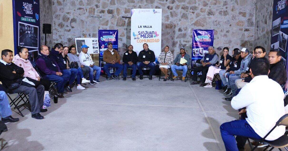 San Juan del Río, Qro., Marzo 13 del 2026.- Durante la segunda edición del Programa “Viernes en La Valla” -que también representa la octava del esquema de jornadas de trabajo en comunidades que implementa el Gobierno Municipal de San Juan del Río, presidido por el alcalde sanjuanense, Roberto Cabrera Valencia-, se llevaron a cabo acciones en beneficio de la ciudadanía, tales como poda, deshierbe, identificación individual de ganado, asesorías, entrega de apoyos, donaciones, rehabilitación de espacios públicos y reforestación, entre otras.
